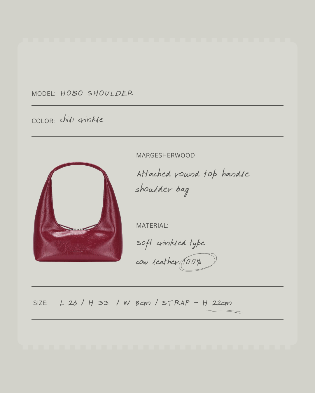 MARGESHERWOOD — южнокорейский бренд, основанный в 2016 году дизайнерами Сонгеун Ум и Суоньён Ким. Бренд известен своими минималистичными и утончёнными дизайнами, предлагающими высококачественные сумки, одежду и аксессуары.