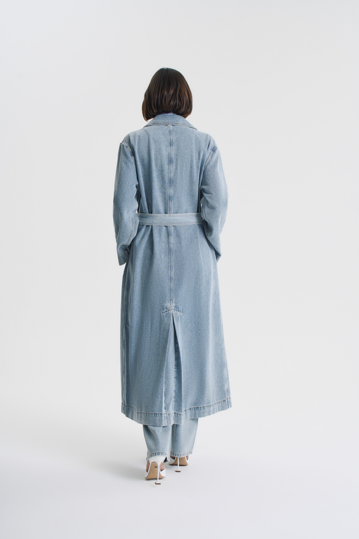 Длинный тренч из денима. Застегивается на двойной ряд кнопок, а также есть пояс в комплекте. Выполнен из 100% хлопка. Воротник с отложными лацканами, есть ...ещё боковые карманы для мелочей или чтобы спрятать руки. Носить тренч можно с джинсами и джинсовой рубашкой, чтобы создать тотал деним лук, или с любой другой одеждой.