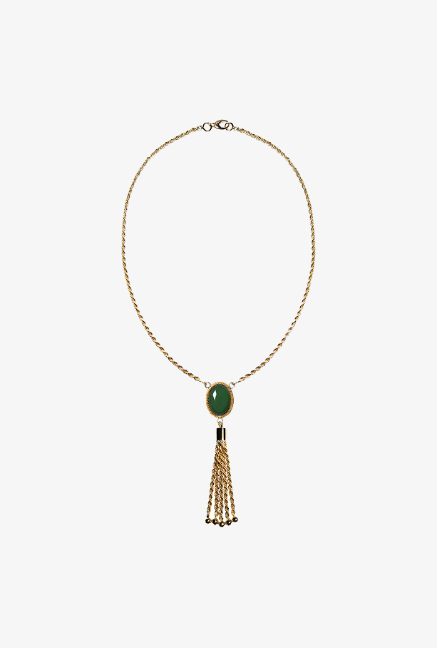Колье с зеленым агатом и кисточкой