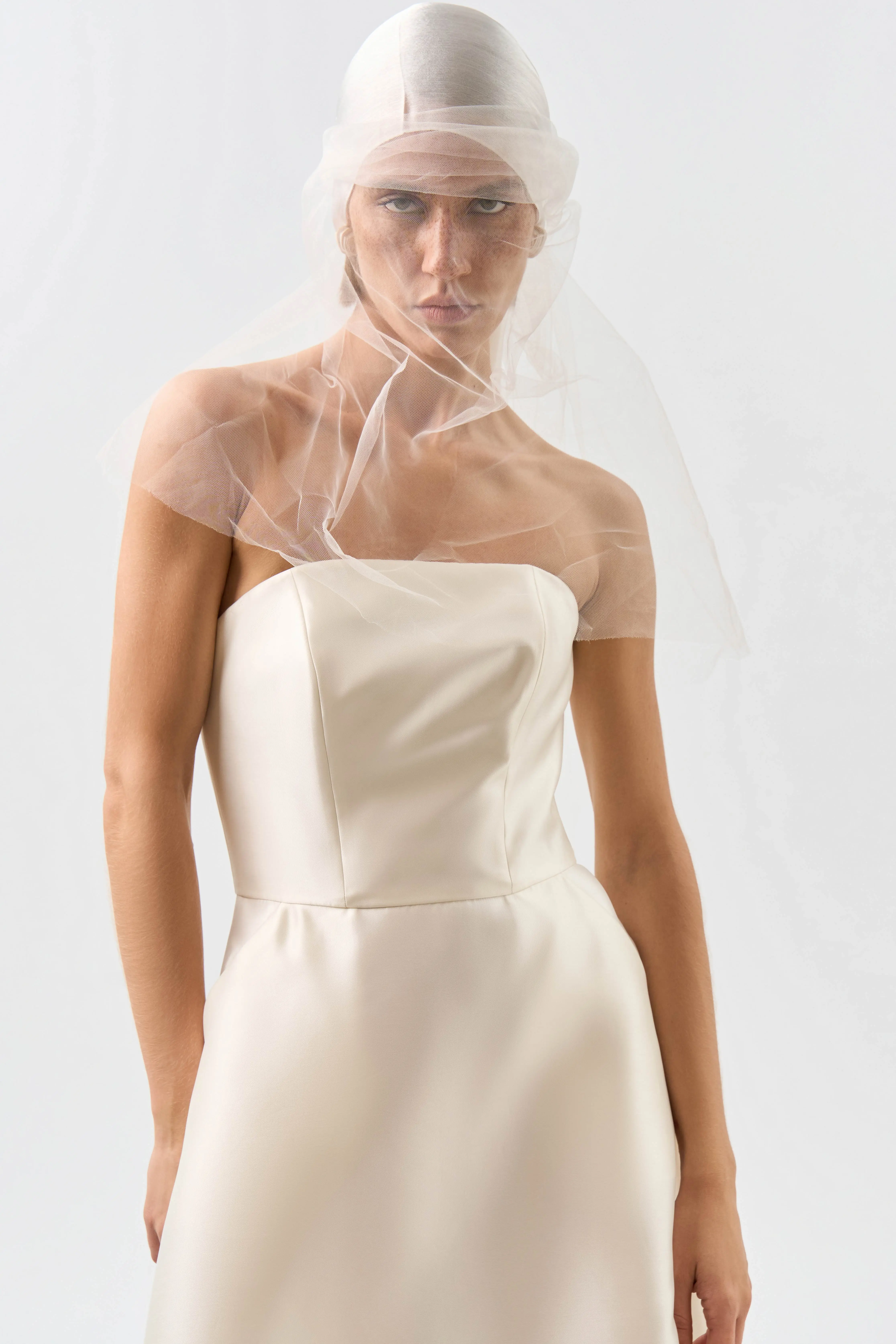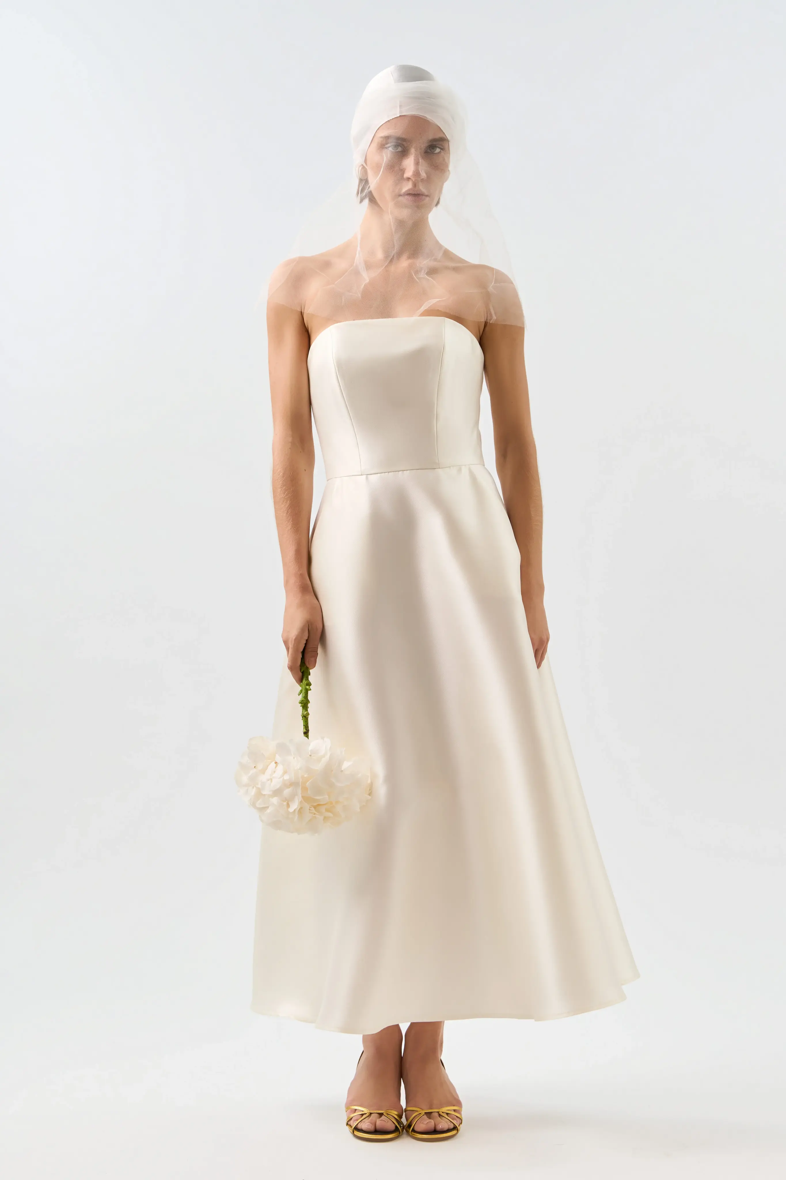 Платье миди с лифом бандо